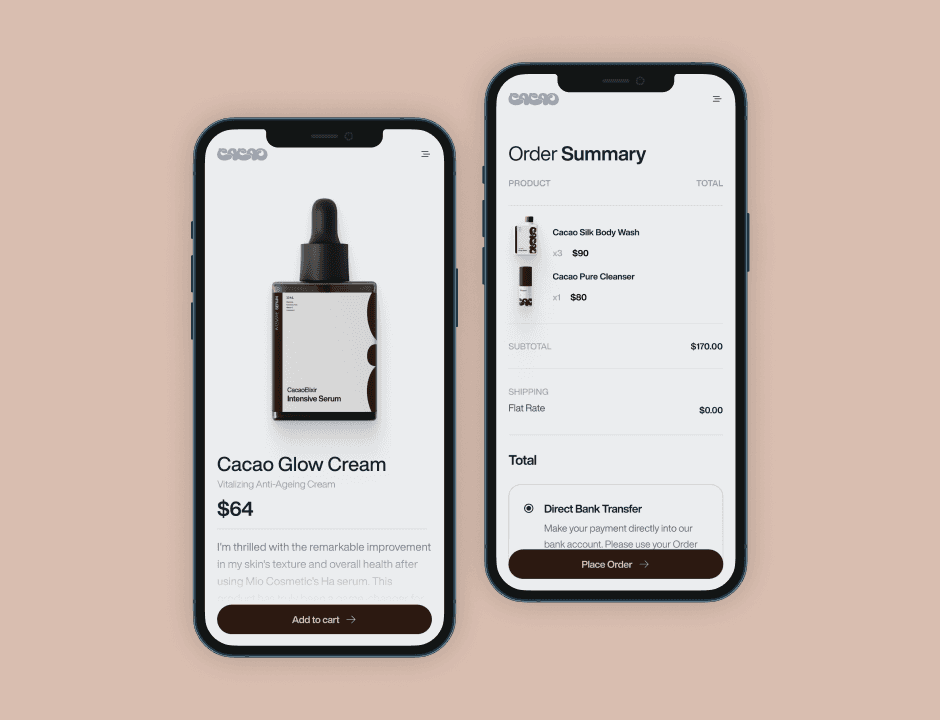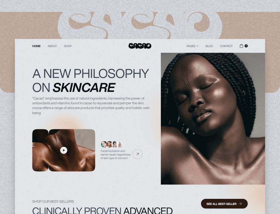 Cacao Cosmetics redefines luxury skincare by embracing the natural potency of cacao. Infused with antioxidants and botanical formulas, the brand brings forward a range of products that nourish, rejuvenate, and celebrate holistic beauty. This project showcases a refined e-commerce experience blending bold design, natural textures, and an immersive storytelling approach — inviting users to explore a skincare philosophy rooted in nature's richness.